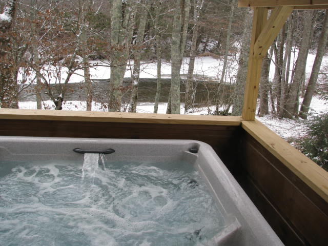 Amenities: Riverside location, air conditioning, full kitchen, two-person hot tub, covered deck, fireplace, flat screen TV, iPod radio cradle, walking path, private river access